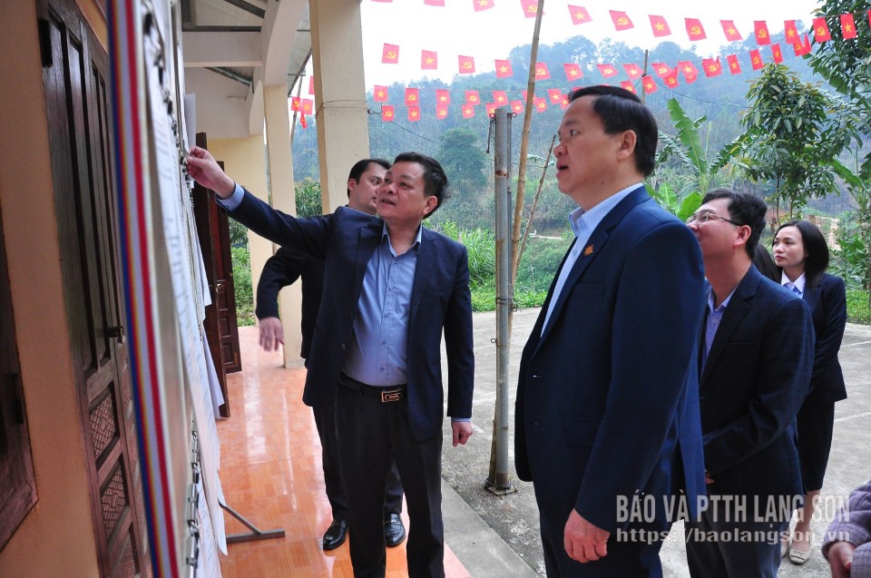 Đoàn kiểm tra công tác bầu cử tại khu vực bỏ phiếu thôn Nà Pàn, xã Hoa Thám