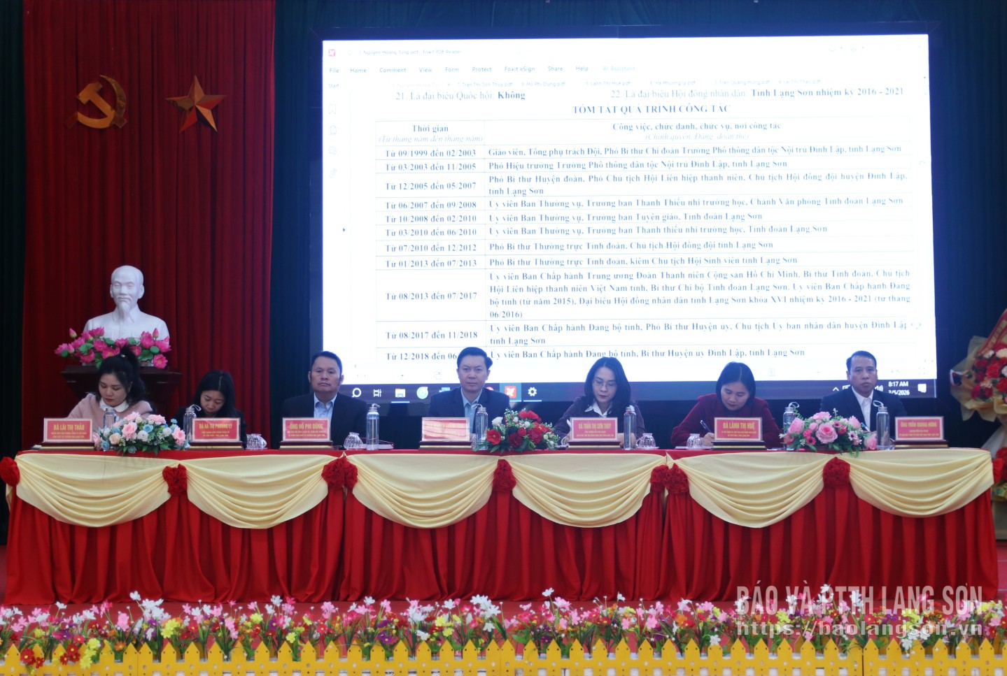 Các ứng cử viên gồm: ông Nguyễn Hoàng Tùng, Ủy viên Ban Thường vụ Tỉnh ủy, Phó Chủ tịch Thường trực Ủy ban MTTQ Việt Nam tỉnh; bà Trần Thị Sơn Thùy, Phó Trưởng Ban phụ trách Ban Pháp chế HĐND tỉnh; ông Hồ Phi Dũng, Chủ tịch Hội đồng quản trị, Giám đốc Công ty Cổ phần Sản xuất và Thương mại Lạng Sơn; bà Lành Thị Huệ, Bí thư Đảng ủy, Chủ tịch HĐND xã Yên Phúc; bà Hà Thị Phương Ly, Phó Chánh Văn phòng Đảng ủy xã Yên Phúc; ông Trần Quang Hùng, chuyên viên Văn phòng Ủy ban MTTQ Việt Nam tỉnh; bà Lài Thị Thảo, nhân viên Văn phòng Công ty Cổ phần Sản xuất và Thương mại Lạng Sơn.