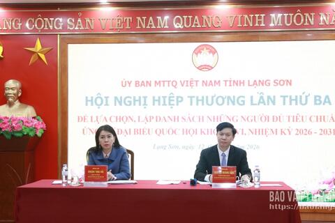 Sáng 5/1, Ủy ban MTTQ Việt Nam tỉnh Lạng Sơn tổ chức hội nghị lần thứ hai, khoá XVI nhiệm kỳ 2025 - 2030 nhằm tổng kết công tác mặt trận năm 2025, triển khai chương trình phối hợp và thống nhất hành động năm 2026; đồng thời tiến hành một số nội dung quan ...
