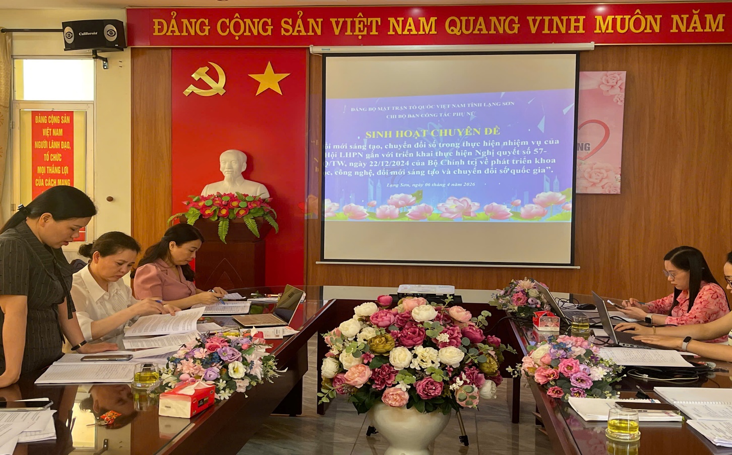 Chiều ngày 6/4/2026, Chi bộ Ban Công tác Phụ nữ tổ chức sinh hoạt chuyên đề tháng 4 với chủ đề: “Đổi mới sáng tạo, chuyển đổi số trong thực hiện nhiệm vụ của Hội LHPN gắn với triển khai Nghị quyết số 57-NQ/TW của Bộ Chính trị”. Buổi sinh hoạt nhằm đánh giá thực trạng, làm rõ những vấn đề đặt ra và đề xuất giải pháp nâng cao hiệu quả công tác Hội, phong trào Phụ nữ trong bối cảnh chuyển đổi số.